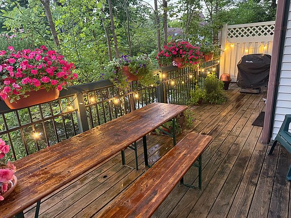 Lake Forest Townhouse For Rent 21 Lake Forest, Burlington AVAILABLE FOR RENT OCTOBER 1, 2025, THROUGH MAY 31, 2026. OWNERS WILL RE-OCCUPY AT THAT TIME. Furnished Townhome * Garage * 2BR+Den/Office * 1.5 Baths * Near Lake and Bike Path * Wood Floors * Fireplace * Tastefully furnished * Rear Deck Everything you need to live comfortably : Open Living and Dining Room area with comfortable furnishings. Gas Fireplace Wood floors with rugs upstairs and down Kitchen opens to Dining Room. Dining Room seats six (or more) Kitchen has white cabinetry and granite counters with stainless steel appliances (gas stove, built-in microwave, dishwasher, and refrigerator) Kitchen counter seats two on stools Fully equipped kitchen (plates, cutlery, pots, pans, utensils) Large rear deck overlooks pond. The deck has Adirondack chairs and a gas grill Two large bedrooms upstairs, both with queen beds. Den/Office with cathedral ceiling furnished with two desks/chairs, Chair and small ottoman Separate laundry room with washer & dryer Single car garage with storage shelving Property is located in a quiet townhouse community located steps away from Oak Ledge Park, Lake Champlain and the Burlington Bike Path. Owners reoccupy in June each year. Beginning and ending dates are somewhat flexible, but looking for at least six months continuous occupancy. HOA prohibits short-term tenancies. The tenant pays for electric, gas, water, and cable/internet, if desired. Rubbish and snow removal are included. We're dog lovers, so we will consider renting to a dog owner. No cats or puppies, please. HOA must approve dogs. Certain breeds may not gain approval.