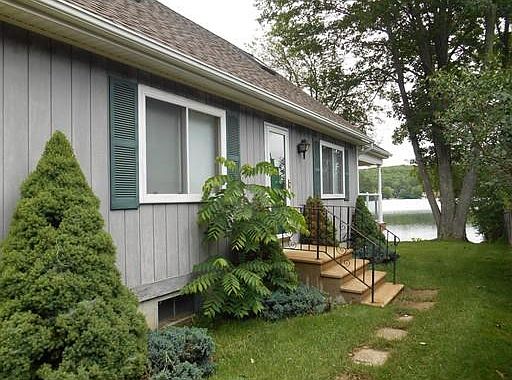 Beautiful waterfront home available! Just in time for summer fun on Sugden Reservoir, a full recreational lake with 50 feet of waterfront and beautiful views. Kitchen offers cherry cabinets, granite countertops and appliances that have never been used. Beamed and cathedral ceilings with skylights, hardwood in living room and both first floor bedrooms. Two Andersen sliders open up to the gorgeous 24x12 covered, composite deck with recessed lighting, skylights and clean view of lake. Tiled bath with swan stone. Roof was stripped within last eight years. Central air, generator hookup with two circuit breaker panels and separate heating zone in basement which is semi-finished. Wood stove and aluminum dock included. Come take a look!