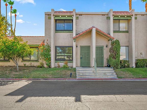 *PRICE ENHANCED* This charming two story condominium is located in the gated community of Lakeview Villas with convenient access to nearby shops, dining and major thoroughfares for easy access to all the desert has to offer. The ground floor features living room, oversized dining room, kitchen and a half bath. Upstairs, you'll find two spacious bedrooms (one with a balcony), a full bathroom and in-unit laundry. Outside, the back patio and 2nd floor balcony overlook one of the community pools and feature western mountain views. You own the land, and HOA dues include water, trash, building and lush grounds with two pools & spas as well as enchanting water features. Priced to sell, this one is sure to move quickly, so stop by an open house, or schedule your private showing today!