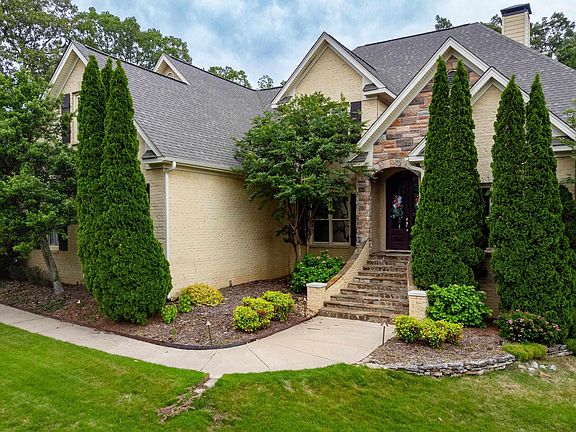 Lovely brick family home on corner lot offering stunning views! Gorgeous backyard with soothing waterfall fountain, covered deck and exterior lighting. Excellent floor plan for both family living and entertaining. Beautiful hardwood floors, handsome mill work and two gas log fireplaces. Two story entry, study & main level primary suite with sitting area, spa bath, dual closets and huge shower. Wall of windows fills den, breakfast area & kitchen w/natural light. Gourmet kitchen includes 6 burner gas cooktop, built-in Fridge, two dishwashers and more. Mudroom/Laundry with desk area. Upstairs you'll find three generous bedrooms, one with ensuite bath and two share large hall bath, second laundry room, Bonus/Game Room with wet bar, and walk-in attic storage. Plenty of closets thru-out! Come See!