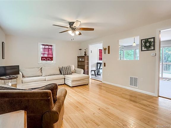 Wonderful Location! Opportunity knocks to own this spacious 4 bedroom, 2 full bath split level with great curb appeal in very desirable neighborhood. This home offers a wonderful flexible and open floor plan that could support your changing needs over the years. Spacious light and bright living room with bay window, open staircases leading to the upper and lower levels. Nicely remodeled kitchen with new cabinets, counter, flooring, light fixtures and sliders that lead out to the deck. The living room and three bedrooms all have hardwood floors. Both bathrooms have been nicely remodeled. Additional 624 square foot finished lower level includes an office/den, family room and fourth bedroom with access to a full bath. You'll love the backyard just as much as the inside. Step out to your private outdoor space for lawn games, gardening and relaxing. Year-round use of a swim spa provides both easy access to exercise and relaxation. The front of the property is also beautifully landscaped. In 2019 a new roof and new siding was installed, among many other updates. Enjoy this quiet and peaceful neighborhood yet close to shopping, town green, park and library. Property to be sold as is.