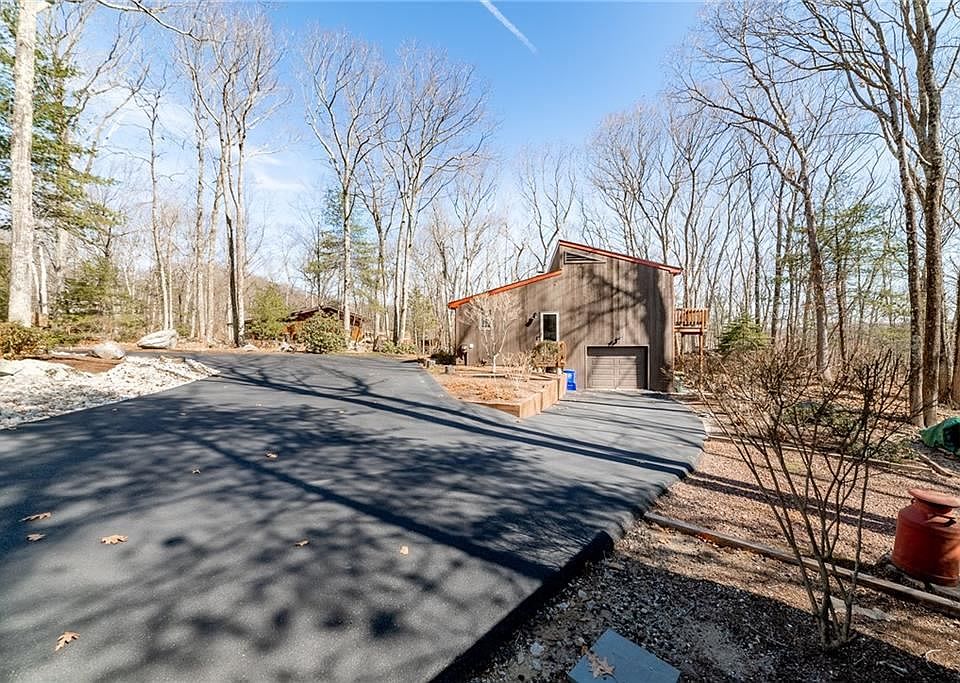 CHALET IN THE WOODS!!! This rustic three bedroom contemporary is ready for it's next owner. This home features three levels of living space , an open kitchen with center island, hardwoods throughout the dining room, and two majestic stone fireplaces in living room, and lower level family room. A full basement with pool table, and a one car garage adjacent to a newly redone, paved driveway. Various updates, and upgrades recently implemented(including new furnace, dishwaher, and roofing). Beautiful cathedral ceilings abound as you ascend to the three very spacious bedrooms on the top level. Tons of storage, and much more!!!
