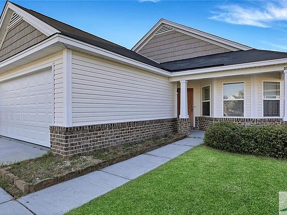 Perfect starter home in the wonderful community of Lake Shore. Step into this 3 bedroom, 2 bath, freshly painted home with open floor plan. The spacious kitchen features a breakfast bar, stainless steel appliances, plenty of cabinet space and a pantry for extra storage. The sunny eat-in dining area opens to the family room with plenty of windows and decorative crown molding. Generously sized master bedroom with en suite bath includes a large soaking tub and spacious walk in closet. Enjoy an afternoon cook out on the patio in your private, fenced in backyard, or enjoy some of the community amenities such as the pool, playground, or club house! Additional features of this home include an attached 2 car garage and a backyard shed for more storage. Transferable termite bond already in place, and the home is in an X flood zone. The Lake Shore community is just off the beaten path, but convenient to I-95, the shops and restaurants at the Tanger Outlet, Pooler, and Hunter Army Airfield.