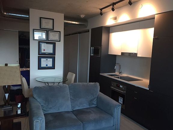 Fully furnished, modern (loft style, concrete ceilings) junior suite (one-bedroom) in Harris Square, widely considered to be the crown jewel of the award-winning River City development. Surrounded by beautiful parks and public spaces for the downtown core at the intersection of Lower River Street and Eastern Avenue in Corktown. Direct access to King (504) and Queen (501) streetcars, (10 minutes to financial district and Eaton Centre) and easy access to Gardiner and DVP. Steps from trendy Riverside, The Distillery District, The Canary District, George Brown College, and the Downtown Core. Seconds from 23-acre Corktown Common Park and bike trails. North West facing view of the Toronto Skyline. A great walking and transit score - walking 89, transit 92, bike 99. Twenty-four hour grocery store on the main floor (Aisle 24), steps away from Canary District retailers including Souk Tabule, the Aviary, Sukho Thai and TD Bank. Tim Hortons, Wine Rack and Beer Store also close by. Loft style design with 9 ft concrete ceiling and floor to ceiling window, 500+ sq. ft. Modern kitchen with upgraded stylish finishes. Wooden floors throughout. Unit includes:Built-in fridge, cook-top with wall oven, microwave, dishwasher, two double closets with additional storage room in unit, ensuite washer and dryer, heat and A/C both forced air gas, 100 sq. ft. Balcony, blinds provided, 4-piece bathroom. Building Amenities include: 2000 sq. foot fitness facility, Yoga/Aerobics Room, Rooftop Lounge and Party Room, Guest Suite, Kids Playroom, Concierge/Security Fully furnished unit. Available August 1, 2024. Utilities and Internet extra. Tenant is responsible for content insurance.Credit check, personal and professional references, copy of pay stub, first and last month's rent. Non-smoking, pet-free unit. Street Parking Available. Suitable for couple or single. Fully furnished.