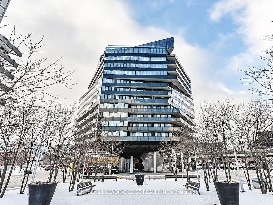 This bright and spacious 1+1 bedroom unit in a modern downtown building offers an open-concept design that maximizes both space and functionality. With 9 ceilings, wide-plank laminate flooring, and an exposed concrete wall with visible ductwork, the unit exudes a trendy industrial loft vibe. The versatile living area allows for multiple furniture configurations and overlooks a stylish kitchen with stone backsplash and countertops, as well as built-in appliances. The open-plan bedroom is as unique as the space itself, contributing to a truly distinctive atmosphere. A roomy den, complete with an additional storage closet, offers the perfect setup for a home office. The full bathroom features a floating vanity and a full-sized bathtub. Step outside to your private balcony and enjoy stunning cityscape views. Immerse yourself in the energy of some of Toronto's most vibrant neighbourhoods, including the Distillery District, St. Lawrence Market, Leslieville, and The Esplanade.