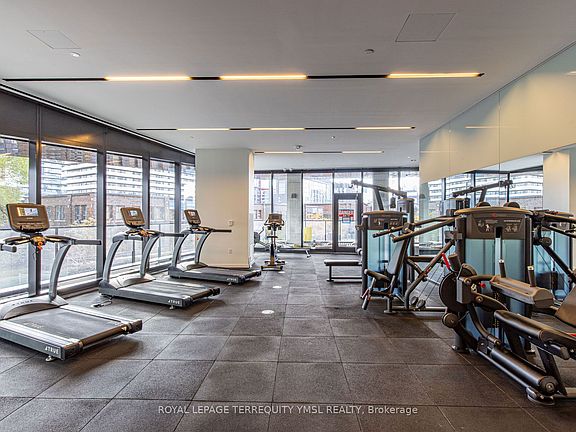 A stylish 1+Den suite feels just like a 2-bedroom! Located at he vibrant River City community where Queen Street meets King Street! Soaring 9'8" exposed concrete ceilings, a signature concrete accent wall, and floor-to-ceiling, wall-to-wall windows opening to a full-length balcony with two walkouts and stunning city views. Enjoy engineered hardwood floors throughout, a modern kitchen, a center island, and professionally installed window solar blinds. Exceptional building amenities include a fully equipped fitness centre, rooftop terrace and party room, guest suites, and more. Steps to King & Queen streetcars, Corktown Common, Distillery District, and Don River trails, with easy access to the DVP. One storage locker included. A perfect home for professionals or couples seeking stylish, quiet city-core living.