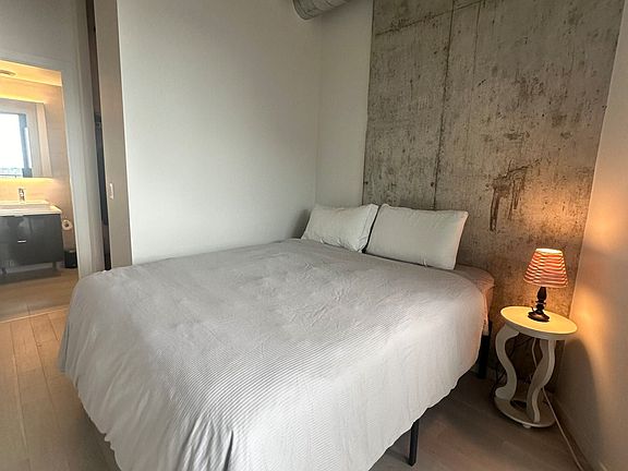 700 Sq Ft. The Best Layout In The Building. The Only Exposure With Privacy And Ambience Of Unobstructed View. Den Can Double As A Bedroom, Or Office Space Or Extend Your Living Room Space. Spacious, Bright, Floor To Ceiling Windows, 9' And 10' Foot Exposed Ceilings, Master Bedroom W/ Ensuite 3Pc Bath. Engineered Upgraded Hardwood Floors, Stone Countertops, European Cabinetry And B/IAppliances,1 Parking, 1 Locker And Bike Rack Included. *For Additional Property Details Click The Brochure Icon Below*