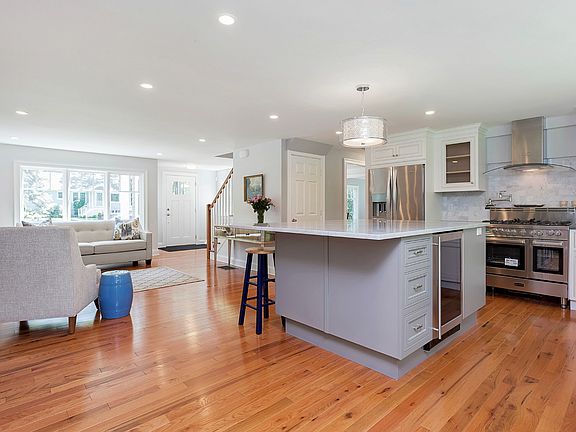 This 1958 ranch was transformed in 2016. Now the house has 4 bedrooms up with the first floor renovated down to the studs. All interior walls were moved/renovated. Master bedroom has 12ft ceiling with large walk-in his/her closets. Master bath has separate water closet, spacious shower with built in bench, and separate his/her vanities. Two bedrooms share a Jack-n-Jill bathroom with private toilet & tub. The 4th bedroom has its own full bathroom. First floor has an open floor plan with powder room. Kitchen has carrara marble island with pietra del Cardosa counters. Mud room is huge with built in bench/hook area, pantry closet with extra storage space. Pella windows. Finished basement. High garage ceiling w/room for lift. Walk to train!