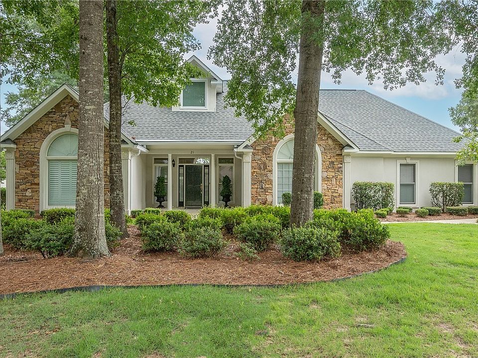 Location! Location! Location! Greeting you into the beloved Greystone subdivision, this stunning custom beauty blends timeless charm with incredible versatility on a lush, corner lot just off Summerville Road. From the manicured lawn to the artfully landscaped gardens, nearly three-quarters of an acre feels more like a botanical escape than a backyard—with meandering paths, private sitting nooks, vibrant seasonal blooms, and even a greenhouse. A detached 797 sqft heated and cooled bonus building offers a bar, half bath, and a separate 255 sqft 1-car garage, accessible by gated drive from Summerville—ideal as a workshop, party pad, gym, or future guest house. Inside the 2373 sqft main home, rich wood floors flow through intentional spaces including a vaulted great room with fireplace and built-ins, and a jaw-dropping kitchen with custom cabinetry, gas cooktop, double ovens, and designer touches throughout. The dining room offers built-ins and flexibility for entertaining or a stylish office. The split-bedroom layout features a dreamy primary suite with glass doors opening to a private courtyard that flows into the backyard oasis. The ensuite is a stunner with large tiled shower, soaking tub, and elegant double vanity. Two additional bedrooms are spacious, with the rear room enjoying private access to the hall bath. A guest half bath, oversized laundry, and 2-car side-entry garage complete this one-level gem, tucked inside a cul-de-sac neighborhood with one-way in/out access and Glenwood School in the backyard.