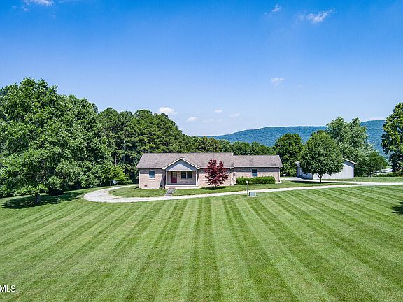 Beautiful mountain view. Gorgeous sunset. 1832 sq. ft. 3 bedroom , 2 bath home with a large 2 car garage. walk-in shower and walk-in closets. All brick, low maintenance. also has a 24 x 52 detached garage with 3 bays and work shop. Gently rolling 5.5 acres for your animals.