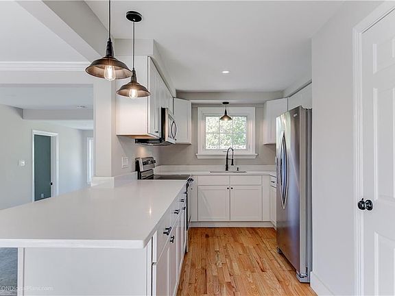 Welcome to 21 Linda Avenue, a stunningly updated residence located in a great Portsmouth neighborhood! This ranch-style home has been completely renovated including a new kitchen, new bathroom and so much more. Please refer to the attached improvements sheet of a full list of updates. Ideally located in Portsmouth with easy access to the Mt Hope Bridge, the Sakonnet Bridge and both main roads on Aquidneck Island, you are close to everything! In addition to the three bedrooms, there is a bonus room that would be ideal for a home office. The pellet stove provides a supplemental heating source which is great as home heating prices soar. The pristine unfinished basement has plenty of storage. This space could also be finished out for additional living space! There is a recently installed Humidex whole-house dehumidification system and French drains in the basement level. The fully fenced backyard has a patio & firepit as well as a shed. The oversized one-car garage is in impeccable condition and has a 220-volt outlet for your power tools. This turnkey home needs nothing at all, inside or out! With floors resurfaced, many new windows, fresh paint, updates to the plumbing, heating and electric, it is ready for you to move right in and enjoy!