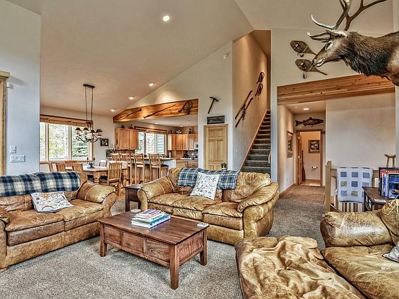 Spacious 5 BD 3.5 BA home w/ Continental Divide views, backing to open space in sought after Soda Creek. Interior features Great Room w/ vaulted ceilings & rock surround gas fireplace, main floor master w/ XL walk-in closet & additional main floor family room w/ attached bar area (could be home office). Professionally landscaped yard, sunny west facing deck w/ hot tub (AS-IS) & Buffalo Mtn views & a rare 3 Car Garage! Steps to trails, open space, National Forest, countywide bike path & Summit Cove elem.