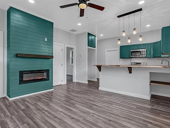 Private deckElectrically heated fireplaceLarge kitchenSleek modern finishesBrand new appliancesLarge drivewaySpacious backyard