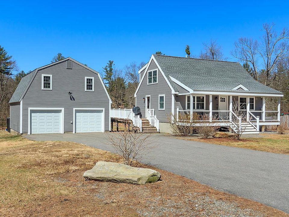 Welcome to 21 Louise Drive where pride of ownership shines through! This beautiful cape under went extensive renovations in 2016 including new roof/siding, heating system, full plumbing, full electrical, and much more! This 3 bedroom 2 bathroom cape is central to most things (grocery stores, restaurants, and schools), close-by to route 102 which is an easy commute to Nashua/Hudson, Route 3, as well as Londonderry and I-93 for those who need a highway commute. As you arrive you will be greeted with a wonderful farmers porch perfect for enjoying mornings and afternoon alike. Composite decking and vinyl rails make maintenance a breeze. As you enter the home you will notice the lovely maple hardwood flooring as well as your renovated kitchen with ceiling high cabinetry with crown molding, quartz countertops, butcher block island, and stainless steel appliances. Your first floor bathroom has a jack and jill vanity, tiled walk-in shower, as well as a tile dog washing station! Rounding out the first floor you have a lovely dining room as well as a first floor bedroom. As you head up to the second floor you have 2 large bedrooms as well as a lovely full bath with a tiled tub/shower. Basement features a pellet stove for supplemental heat, a laundry area, flex space that could easily be finished, as well as a walk-up doghouse style exit. Looking for additional space for a workshop or mancave? Look no further as the 2 car detached garage has a large room above. Showings start 4-15-2023.