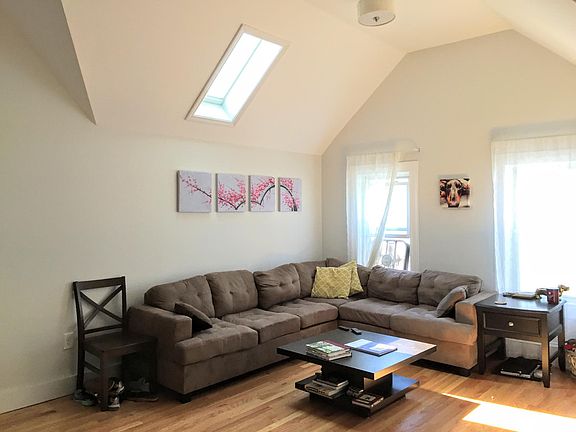 NO Fee! 2 bed 1 bath Davis/Ball Sq Vaulted Ceiling Treetop Deck Enjoy morning coffee on your private treetop deck. This is a sunny skylit apartment on a quiet street, yet close to everything. The apartment is 8 blocks from Davis Sq, 2 blocks from Powderhouse Square and 1 block from Ball Square. It is 3 blocks to the Minuteman bike trail. Vaulted ceiling 2 bedroom 1 bath apartment, features: * 13' vaulted ceilings with skylight. Apartment gets lots of natural light. * Kitchen equipped with granite counters and new appliances including a gas range, built-in microwave, dishwasher, refrigerator * Two bedrooms * Modern bathroom * Large private roof deck and enclosed backyard with patio * In-unit washer and dryer - no need to share with others * Lots of storage - deep double closets in bedrooms * New furnace, new windows, energy efficient * Pets welcome, with landlord approval * Walk to Davis Sq (.5 miles, 10 min), Ball Sq. (half a block), walk to restaurants, bike path Available Oct 1. Water included, tenant covers gas and electric. Lease, first, last and 50% security. I am the landlord and I'm posting and there is no realtor fee! Note: The interior photos were taken in the evening, so they don't show how sunny the apartment is. No FEE! Available Oct 1. Water included, tenant covers gas and electric. Lease, first, last and 50% security. I am the landlord and I'm posting and there is no realtor fee!