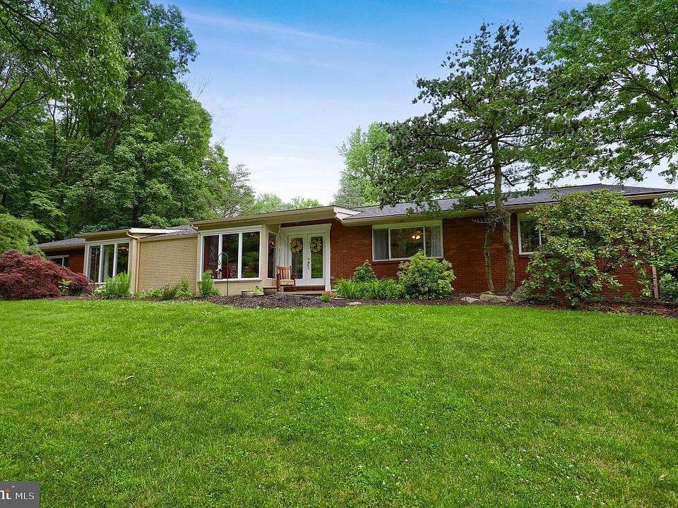Serene, Spacious Ranch with In-Law ~ Perched atop a raised lot surrounded by lush trees and neighboring ponds, the convenience of one-level living awaits. Enriched with extensive outdoor living spaces, including a wrap-around patio, stone fire-pit, and garden, enjoying the peaceful setting is effortless. ~ Up the walkway to the beautiful brick, ranch home, two double glass front doors welcome you inside where the open foyer pulls you into the spacious, vaulted family and dining rooms. Multiple wall cut outs create unique sitting nooks, while two sets of tall front windows brighten the entire space. ~ Follow the new hardwood flooring throughout the main level to the large breakfast area open to the cozy living room, featuring a full brick wall fireplace and oversized doorway to the vaulted sunroom. ~ But first, the vaulted kitchen; flowing openly to the eat-in area and highlighted by endless cabinetry, a multi-height center island with room for high seating, double wall oven, deep sink, granite countertops, and pocket window stealing outdoor views from the sunroom. ~ Brightened by tall windows and various glass doors on each wall, the grand sunroom features a vaulted, wood-paneled ceiling, tile flooring, and extensive visuals of the beautiful backyard and oversized patio with stone fire pit. ~ In addition to three secondary bedrooms on the main level, the gorgeous Master Suite is enhanced by a vaulted ceiling, vinyl flooring, and an incredible walk-in closet. Enjoy your sun-soaked, private office with views of the backyard, while a personal sauna room and newly remodeled bathroom with large skylight, double vanity, tile shower, and soaking tub allow you to spoil yourself after a long day. ~ Downstairs offers a spectacular living space all its own; perfect for in-laws and visiting guests. They can make themselves right at home with not one, but two bedrooms, a full kitchen with island and built-in range, full bath, and private entry, plus a spacious living room and exercise room for anyone in the house to enjoy.