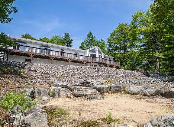 Vacation year round in this sprawling ranch on Lake Winnisquam . This beautiful home sits on a large lot with 158â of prime waterfront land with its own sandy beach and private dock. The house boasts picturesque views of the lake and mountains from its expansive deck. The large windows insure these magnificent views from the large open concept main living area and the bedrooms as well. The deck is accessible from the dining room, sun porch, master bedroom, and a 2nd bedroom with large sliders creating a wall of glass facing the lake. The basement features a large full bath and plenty of space to finish for entertaining and also a walkout to the beautiful lake. The u-shaped circular driveway provides ample parking for family and guests. This welcoming lakeside community also provides many amenities,including tennis courts,a large beach,and a family friendly environment.