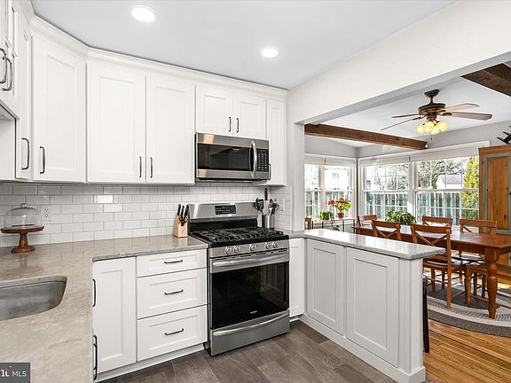 NO MORE SHOWINGS PER SELLER! Welcoming expanded cape/colonial on a corner lot conveniently located off of Nottingham Way in Hamilton Square has been lovingly maintained and upgraded for the new lucky owner! Walking up to the front door you will be impressed with the crown and dental molding with fluted woodwork around the updated front door. Step into the entrance Foyer with recessed lighting and guest closet before you step up to the freshly painted formal Living Room showcasing hardwood floors, recessed lighting and replacement windows. The updated Kitchen features new white 36" soft-close cabinets, quartz countertops, undermount sink with gooseneck faucet and separate faucet with filtered water, newer stainless-steel appliances including French-door frig, recessed lighting and luxury vinyl tile floor. Overlooking the Kitchen warmth abounds in the volume-ceiling Dining Room with charming beamed ceiling, pantry closet, hardwood floors and door to deck. Continuing - step-down into the Family Room highlighted by a corner brick surround with a cozy woodburning stove for those chilly evenings or snowy days topped off with two stained-glass windows. Berber carpet and generous pantry/closet for storage and a single French door to a front-covered porch complete with hanging swing to relax and enjoy your morning coffee and lovely property. The first-floor Bathroom has been renovated with newer tile, 36" vanity with soft-close cabinets/drawers, quartz countertop and shower/tub sliding doors. First floor Bedroom features hardwood flooring, and space-saving pocket door which is next to a second Bedroom/Office with 2 ample closets with built-in shelving. Both rooms have ceiling fans and recessed lighting and recently painted. Travel upstairs to a third Bedroom with carpet, wardrobe closet that will stay with the home and access to a Jack 'n Jill Bathroom. At the top of the stairs is a Nursery/Sitting Room with built-ins and a large bow Andersen window (this window was replaced earlier) to add cheer to this light & bright space. Step into the impressive Primary Bedroom also featuring a large bow Andersen window* (this window was replaced earlier), recessed lighting and walk-in closet. Access to the renovated Jack 'n Jill Bathroom showcases a Kohler soaking tub to relax the cares of the day away and a convenient hand-held shower-head. separate single shower stall, 42" shaker-style vanity with companion medicine cabinet, recessed lighting and built-in linen shelving. Still looking for more? The partially-finished Basement offers a perfect Game Room to expand your living space. It has been freshly painted, recessed lighting, closets, LVP flooring. For energy efficiency the gas furnace was just replaced, newer 50 gallon hot water heater, and updated central air conditioner. There is a separate Laundry area with upright front-loading washer and dryer. Two storage areas with built-in closet and shelving. As spring is approaching you will soon be delighted with the fenced-in backyard with good-sized outside wood deck perfect for summer entertaining, storage shed and trees. With new main systems, replacement roof, replacement windows 2013*, fresh paint and newer flooring in many rooms there is nothing to do but unpack and enjoy your lovely new home within walking distance to nearby school/church and the shoppes, bank and restaurants at Nottingham Point. Seller will supply a clear Hamilton Township Certificate of Occupancy. Closing to coincide with Seller finding suitable housing. Highest and best is due in by Friday, March 8th at 5:00pm. Thank you!