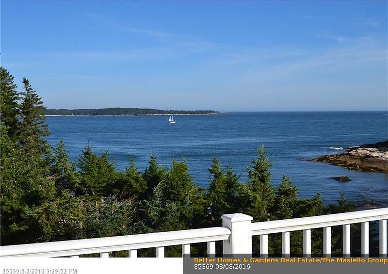 VIEWS - VIEWS - VIEWS!!!! Come and see why this is called the lobster capital of the world!!!! Impeccably cared for 2-bedroom ranch nestled in among the trees, with bold ocean frontage. Newer deck to sit on and watch the boats come and go. Located by lobster buying station McLoon's Lobster wharf. One-car detached garage with a room beside which could be used as a workshop, studio, or whatever. Large master bedroom that has newer master bathroom. Three-season sunporch. Gorgeous!!! COMES FULLY FURNISHED!!!!