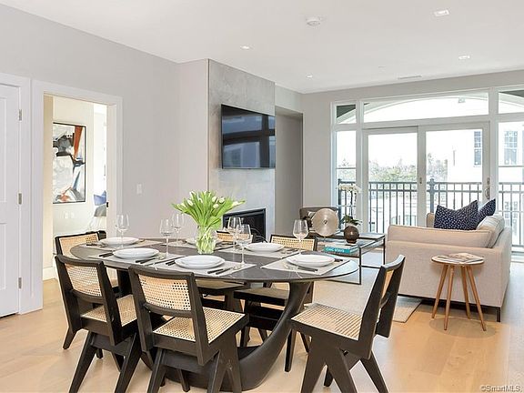 New Canaan's newest apartment complex! Beautiful campus like grounds including roof top grilling station, picnic and fire pit areas, natural material play area, dog walk and washing station, gym as well as under building garage tempered parking. Apartment features open floor plan with bosch appliances, quartzite counter top with counter seating, and access to balcony off living room. Also features stackable washer dryer, wonderful spacious bedroom with walk in closet and luxurious bath with walk in shower! Move right in and enjoy maintenance free living 1 block from the beautiful town of New Canaan with its many fine stores for shopping and dining. Parks offering tennis pickle ball and playgrounds and the new New Canaan library 1 block away as well!