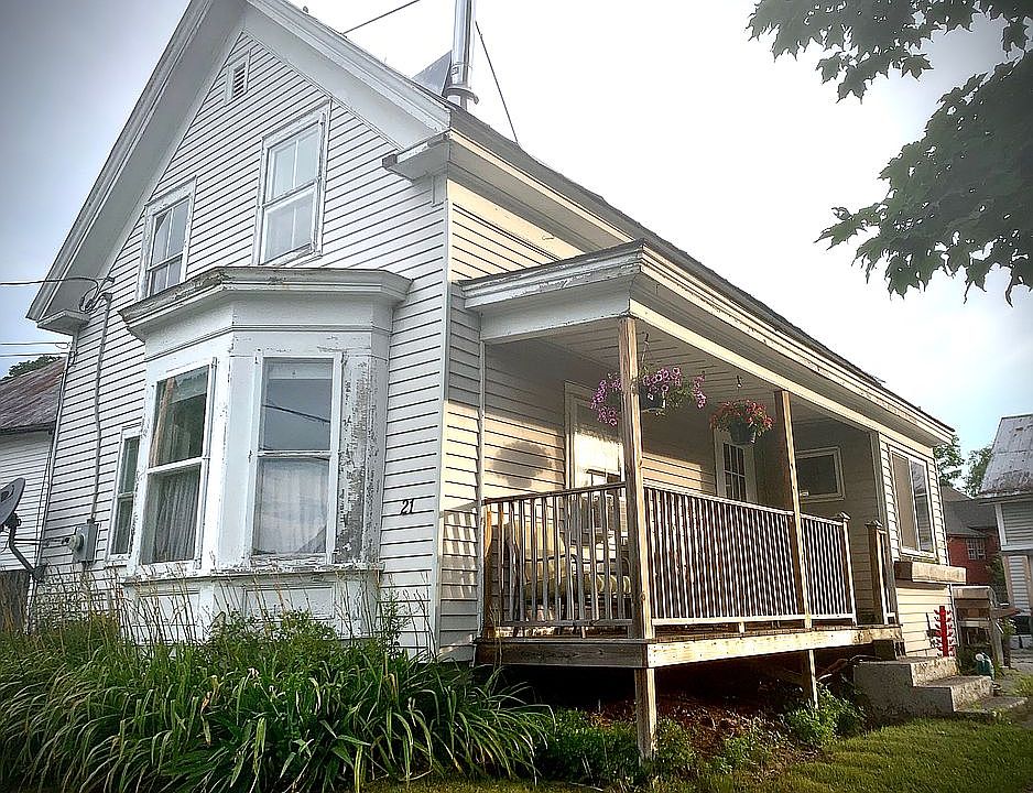 All the charm of a farmhouse in a convenient village location! This 2-bedroom, 1-bath cape sits on a 0.25+/- acre lot less than 2 miles to I-91, schools and stores. Less than 10 minute walk to Bradford Main Street. This home features a spacious family room with vaulted ceilings, cozy dining nook, and light-filled rooms throughout. Stunning exposed beams and wide pine floors bring out this homes rustic character. The second living room space could easily convert into a 3rd bedroom. There is a 1-bedroom apartment over the renovated 2-car garage which is perfect for in-laws or as a rental property for income. Newly rebuilt deck to access the apartment space completed July 2020. If that is not enough, the shed addition to the garage has been fully remodeled into a pristine workshop (brewing equipment can be negotiated to be included with sale). Many updates throughout including windows, insulation, new electric range and added closet space. Contact owner at ashley_lizabeth@hotmail.com or call the number below for more information or to set up a showing.