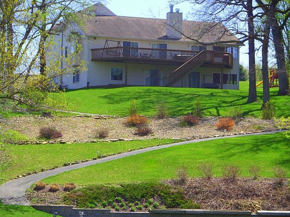 Waterfront home on 2.84 acres! This is a LOT of house. Home has been converted to Natural Gas. Superbly maintained and clean as a whistle. Bring your large family, all your friends and their friends. There is plenty of room for all. The main floor includes: eat-in kitchen area, dining area, 3-season porch with deck access, living room with wood burning fireplace and deck access, master bedroom with en suite and deck access, a guest bedroom, full bath, laundry/mud room and hardwood floors throughout. Need just a bit more space? Everyone will love the finished living space over the garage. Use as a bedroom or maybe the perfect home office! Easy access and very private! The fully finished walk-out lower level has a spacious family room with gas fireplace, sliding doors to the lower deck (screened in), a full bath, two guest bedrooms, a bonus room, built-in shelving as well as a lower level storage area with double doors to the outside. Lower level has radiant heat in floor. Very nice! Down to the lake you will find a paved path, professional landscaping and much more! Take a look at this home today! Move-in ready and waiting for you to start your lake fun!!! Home includes an Eliminator water purification system. Some furnishings may be negotiable and dock can stay.