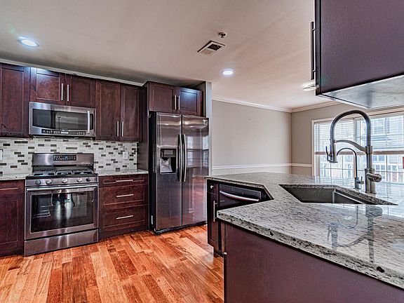 Spectacular End unit 2 bedroom townhouse with bonus room for possible 3rd bedroom in prestigious Boatworks. This 1800 Sq Ft Bryant model has hardwood floors & recessed lighting. Kitchen features SS appliances and granite counters. The master bedroom has vaulted ceilings with walk-in closet. The en-suite bathroom includes a soaking tub with double vanity and separate shower. Enjoy a glass of wine on your private deck off the dining room. The open room downstairs opens out to your patio. Garage parking with another driveway space (2 Car) included. You are within walking distance to the NJ light rail, NJ Transit, all shopping and parks. The Boatworks community includes a swimming pool, rec facility and marina waterfront walkway which is included as well. **1/2 fee paid with 1 year lease** Applicant will go through NTN Screening.