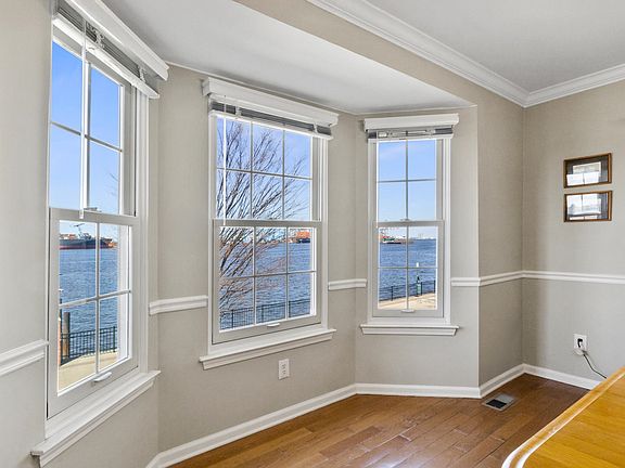 The Madison-style bay-facing townhouse in Boatworks Bayonne, a rare find, is now available for you to own. The 1950 sq. ft triplex is well maintained and designed with windows that frame the water views from every room in the house. The spacious 2nd-floor living room, dining room, and kitchen are adjacent to an open deck, offering a perfect spot to relax and admire the stunning sunsets on the bay. The main bedroom is a spacious sanctuary with a vaulted ceiling, walk-in closet, ensuite bath with a deep soaking tub, shower stall, and dual vanity. The ground floor recreation room, the largest room in the house, is ideal for entertaining and offers direct access to the riverwalk. The townhouse, nestled in a private community of 160 townhomes, is a charming retreat surrounded by lush greenery. The location is not only serene but also convenient, with the 8th St Light Rail and other commuting options nearby, providing easy access to NYC, Jersey City downtown, and beyond.