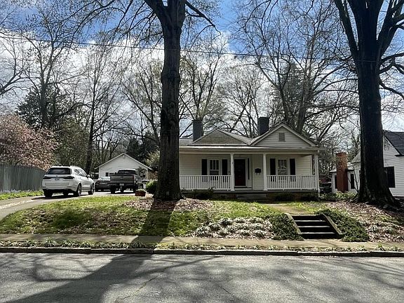 Relax on the covered front porch of this charming Historical bungalow ranch located in the heart of downtown Concord. This 3 bedroom, 2 bath split bedroom floorplan consists of a large living room and oversized dining room, an updated kitchen with vaulted ceilings, granite counters, custom cabinetry, stainless steel appliances and a gas stove, incredible woodwork, and moldings throughout. Off the kitchen, you'll find the master bedroom and an en suite bathroom with vaulted ceilings. Brand new flooring throughout, newer paint, updated bathrooms, fenced-in backyard, 20X20 shed with electricity. Walking distance to nearby Shops, Restaurants, Library, Greenway, and more! Landscaping Included!