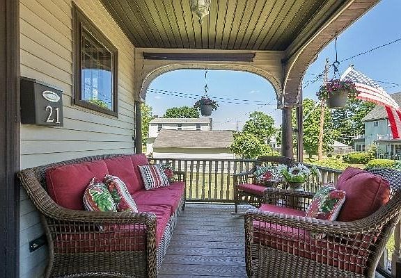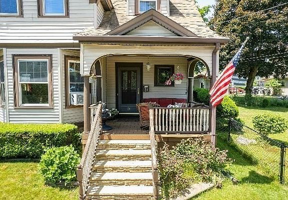 Discover yesteryear elegance in this well maintained Queen Anne Victorian home w/numerous home improvements. As you set foot into the grand foyer to greet your family & friends, you will notice the rich, warm interior decor. The 1st floor layout comes with a formal living & dining rooms, family room, cathedral ceiling with skylights & granite countertops in the kitchen and new tiled 1/2 bath with vaulted ceiling with skylight. There's 2 staircases leading up the 2nd level to the center hallway the leads to 2 good sized bedrooms and primary bedroom with 16x18 deck with carport below. The walk up attic is ready to be finished for additional living space. Beautiful oak hardwood floors, high ceilings, detailed wood trim finishes and plenty of natural daylight. Well groomed lot with sprinklers, private well, platform composite deck and numerous perennial gardens in great location in town.