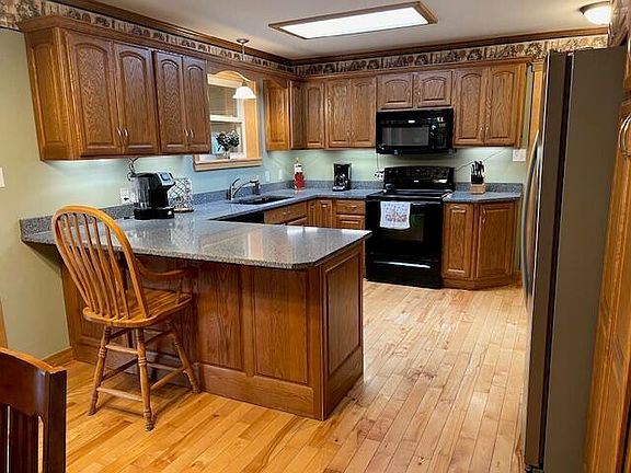 This residence offers comfortable living spaces and a number of desirable features. One floor living! Move in ready! Three bedrooms and 1 bathroom. Back enclosed porch with sliding glass doors has many windows to view the outdoors. A two-bay attached garage with above storage and an attached shed are great for keeping the recreational toys under cover. The ATV/snowmobile trail is just a quarter mile down the Chapman Rd. Set on a 1.23 acres lot, the property has a large front and rear lawn for all kinds of outdoor activities. There is a large garden spot in the back that needs to be tilled, and it will be ready again to plant next Spring. Call for more information or set up a showing. Many updates to include a new fuel tank, and new GFCI's