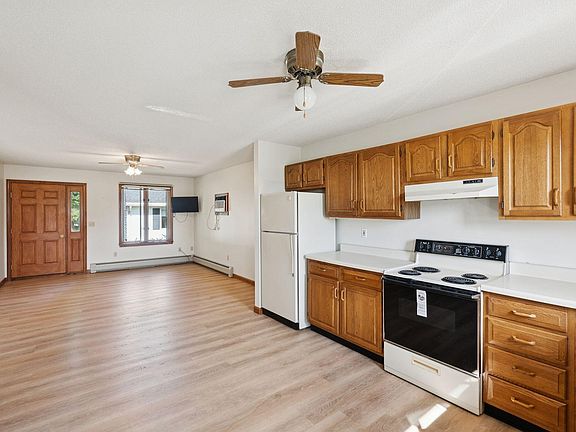 The open-concept living and dining area features updated flooring and plenty of natural light, creating a warm and inviting space. The kitchen provides ample cabinet storage and counter space, flowing easily into the dining and living areas. Both bedrooms are generously sized with good closet space. The full bath includes in-unit laundry for everyday convenience, while the additional half bath adds extra functionality for guests.