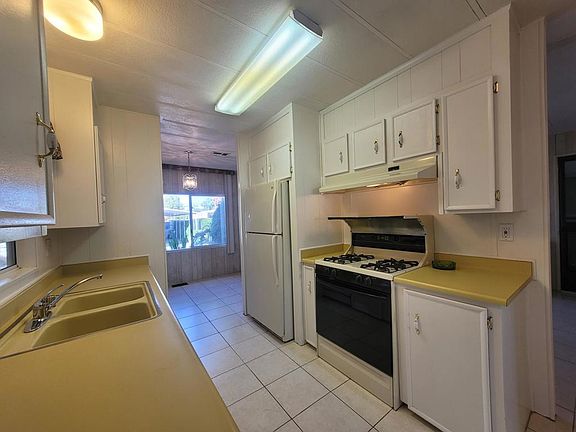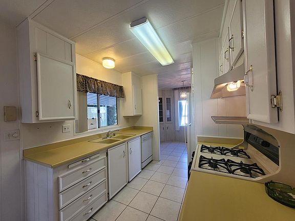 21 Mesa View, in the desirable Caliente Sands Mobile Home Community (age restricted 55+), is a charming and comfortable home, just waiting for the light touch of a new owner to make this a lovely cozy residence. This 1977 Lancer double-wide manufactured home with 1056 sq. ft. (44 x 24) is clean and bright throughout. Entry through the leisure door opens into the ample kitchen with gas range, ample fridge as well as a large closet housing a full-size Maytag W/D set. The dining area beyond leads to the living room which has an east-facing door leading to a carpeted roomy addition that is equipped with a window AC unit rendering this space suitable for use as an office or den. Down the hall from the living room is a pantry / linen closet across from which is a full-size guest bath with the large guest bedroom beyond. Adjacent is the very spacious primary with a large reach-in closet at the back wall and the ensuite 3/4 primary bath. (Both toilets in the home are new.) The home has a nice large deck in the back that affords a lovely mountain view; the entire backyard has a lovely seating area and much potential for privacy, entertaining and gardening. The home is equipped central air and heating, and the adjacent carport provides tandem parking for two cars and a single storage shed. Monthly space rent at this appealing home will be $791.00 per month.
