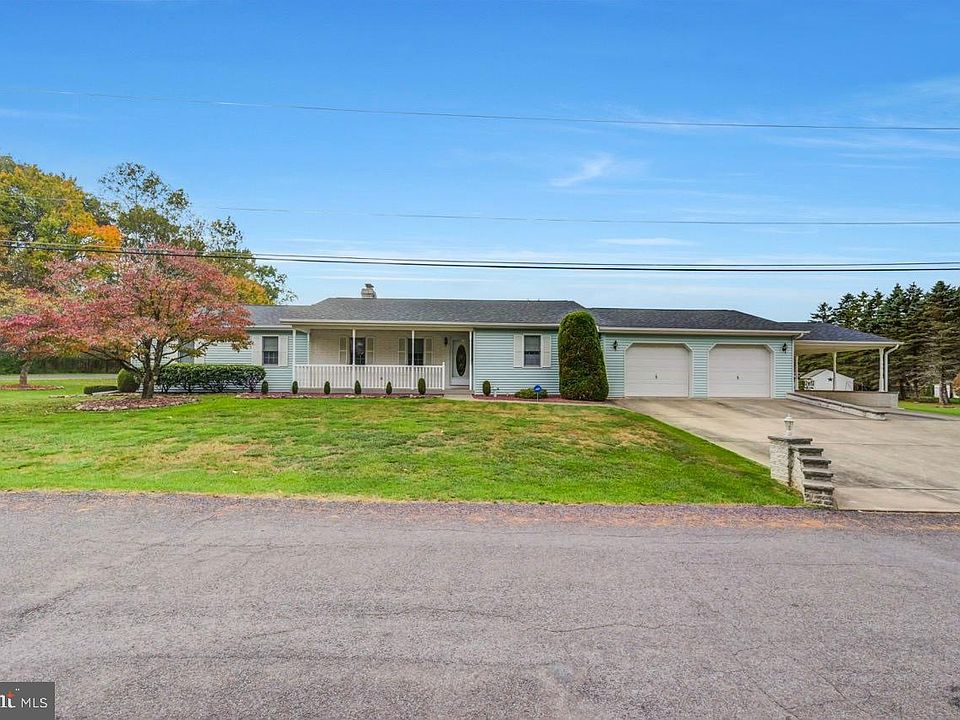 Lovingly constructed with attention to every detail, this 4-bedroom, 2 full + 2 half bath ranch-style home combines timeless craftsmanship with modern comfort. Set on a corner lot of over half an acre, the property features a heated 2-car garage plus carport, new deck, quarry-tiled front porch, and construction-grade concrete driveway and walkways. Inside, you'll find custom solid oak cabinetry, trim, and wood accents throughout, a spacious kitchen with pass-through to the dining room, and a sunken living room with a beautiful fireplace and handcrafted built-ins. The primary suite offers a walk-in closet and private bath, while the finished lower level adds a custom bar, pool table, pellet stove, cedar closet, and extra living space. Conveniently located near I-80 and PA 476, this home offers quality, comfort, and easy access — truly a commuter's dream.