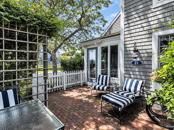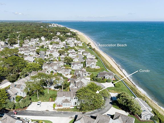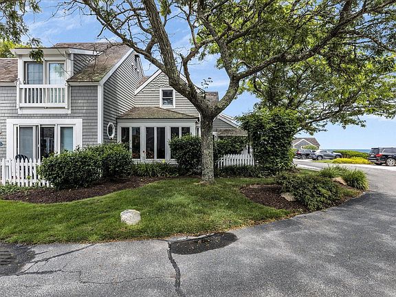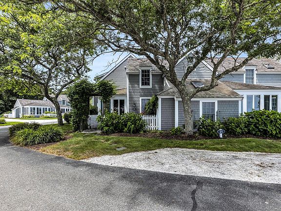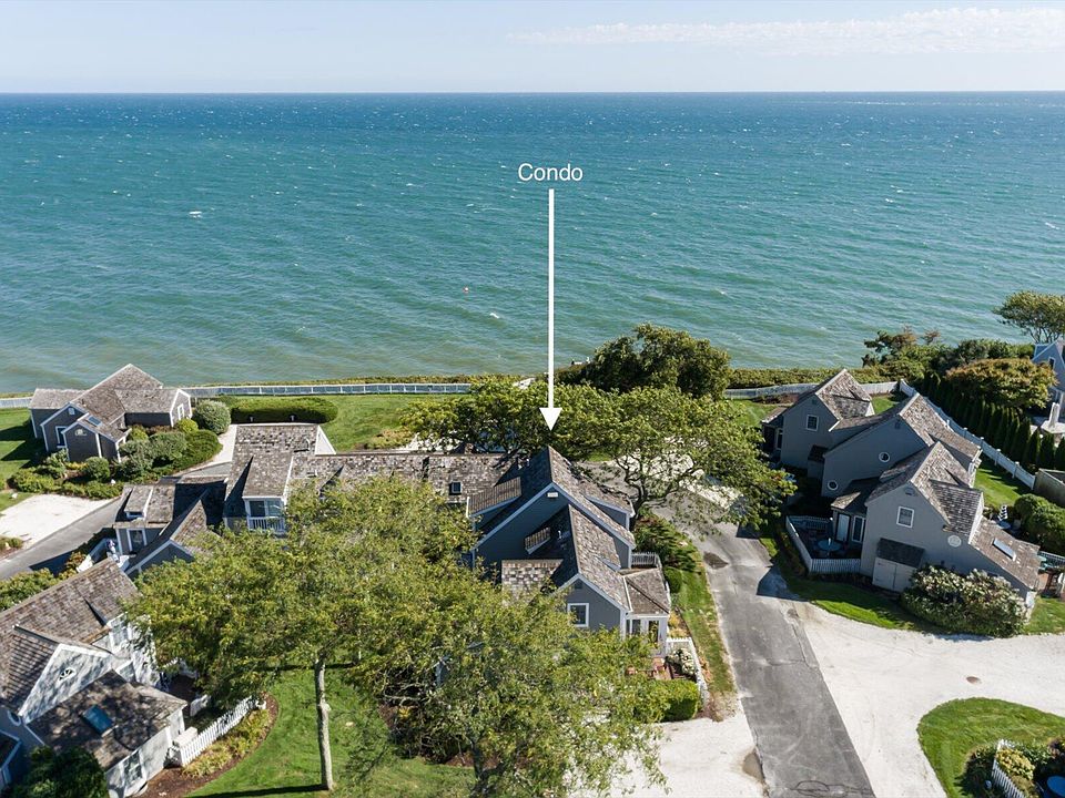 Fabulous ocean-view condo at Maushop Village in the resort community of New Seabury. The condo was also featured in the Cape Cod Home Magazine Summer of 2022 edition. The 1st floor features a living room w/custom built-ins, sunroom dining area w/endless views of Nantucket Sound, full kitchen, 1/2 bath, bedroom w/vaulted ceiling & skylight, under stair storage, washer/dryer, custom blinds. The 2nd level features the primary bedroom with vaulted ceilings, spa inspired full bath with clawfoot tub and full glass enclosed shower. Outdoors you have a private patio where you can listen to the soothing sound of waves hitting your private deeded beach with captivating views Martha's Vineyard. Listing disclosure: the furniture pictured in the photos are from the previous listing and are for staging ideas only.
