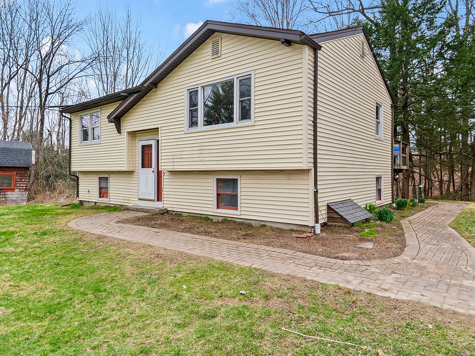 Set amidst the woods bordered by a stream sits this proud North Yarmouth home. Freshly painted and turnkey, you will love the deck for Alfresco dining. This two bedroom home has two additional finished rooms in the daylight basement, perfect for your in home office. The charming shed has plenty of space for outdoor recreational items. Commercial dehumidifier, water filtration system, already set up for a heat pump and generator! Just a stones throw from Gray turnpike exit, this home is a perfect starter home.