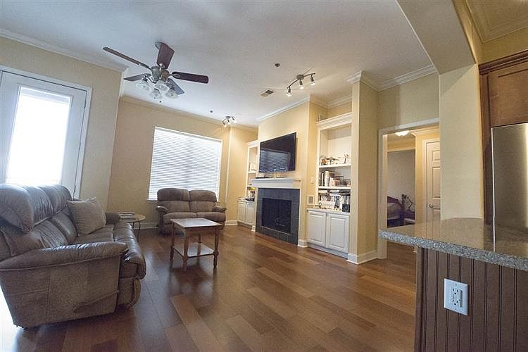 Lovely corner unit. Spacious open living area features hardwood floors, built-ins and a walk-out balcony. Large kitchen w granite counters, SS appliances, gas cooking and tall cabinets. 3 bedrooms 2.5 baths w a luxury master suite w huge walk-in closet and 2nd closet. Gated building and one covered parking close to elevators. Roof top deck with river view; 24 hour fitness center and lounge and communal area. Prime South Bluffs area with walking distance to River and S. Main Arts District.
