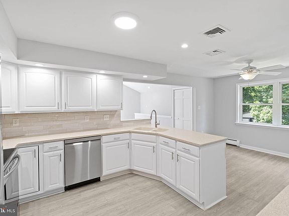 Welcome to 21 Miner Circle, an elegantly renovated residence nestled in the desirable Collegeville Borough. This exquisite home, situated on a serene cul-de-sac, boasts 4 bedrooms and 3 full baths, spanning an expansive estimated 3,000 square feet of living space on a generous 0.49-acre lot. As you approach, you're greeted by a grand pillar entrance leading to a spacious 3-car garage with convenient interior access. Step inside to discover a sophisticated interior featuring an inviting living room, perfect for cozy gatherings. The home exudes an air of luxury with its cathedral ceilings, recessed lighting, and ceiling fans, offering both style and comfort. The heart of the home is the eat-in kitchen, adorned with much cabinets space, Corian countertops, and stainless steel appliances. Adjacent to the kitchen, an great room with access to an oversized rear deck awaits, ideal for outdoor entertaining and relaxation. Retreat to the main ensuite, a sanctuary of tranquility with a walk-in closet, a luxurious bath and access to the deck.. Additional bedrooms are generously sized, ensuring ample space for all. The lower level features a substantial bedroom with a sitting area, perfect for an in-law suite, guests, or a private office. It boasts its own full bathroom, a spacious area that offers a wood-burning fireplace, a laundry closet, and its own exit/entrance. Modern amenities abound, including vinyl flooring and central air with 3 zones. The home is also equipped with an electric setup for a jacuzzi or EV charger, enhancing your convenience and outdoor living experience. Public water and sewage services add to the convenience of this splendid property. Located in the vibrant Collegeville Borough, this home offers access to an array of dining options, charming stores, Providence Town Center, local parks, and the scenic Perkiomen Trail, ideal for biking or hiking adventures. Additionally, the 17-acre Water Works Park offers many amenities for outdoor enjoyment. Experience the perfect blend of elegance and modern living at 21 Miner Circle. Schedule your private tour today and discover all that this remarkable home has to offer.