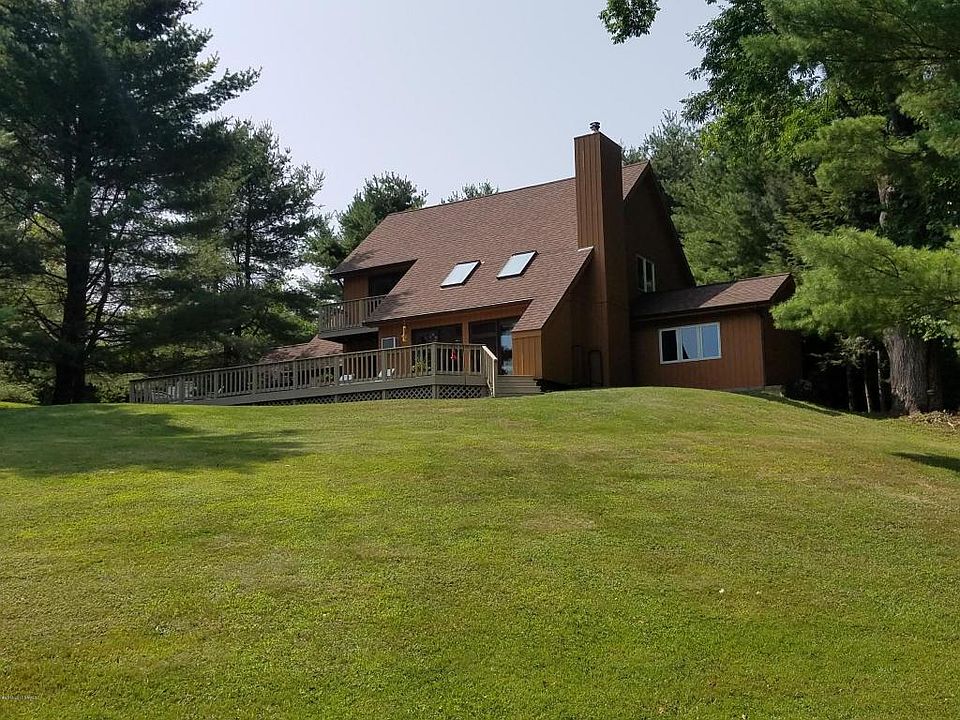 Well kept 3 bedroom, 2 bath waterfront home on nice lot with lake and mountain views. Kitchen, dining area, living room w/ woodstove, family room, 1st floor Master Bedroom w/ bath & laundry area, breezeway/entrance room from 1 car attached garage to house plus workshop/storage off from garage. 2nd level has 2 large bedrooms, large closets, bath and balcony off from one of the BR's. Huge deck off the front of house facing the lake. Back porch area. Will consider selling mostly furnished or empty depending on what buyers wants and needs are. For a great 2nd home you could move right in after the closing and just bring your clothes or it would also make a lovely primary residence. Built for electric heat plus woodstove back up. More storage area in attic over garage Beautiful setting.