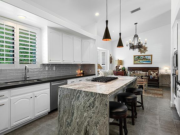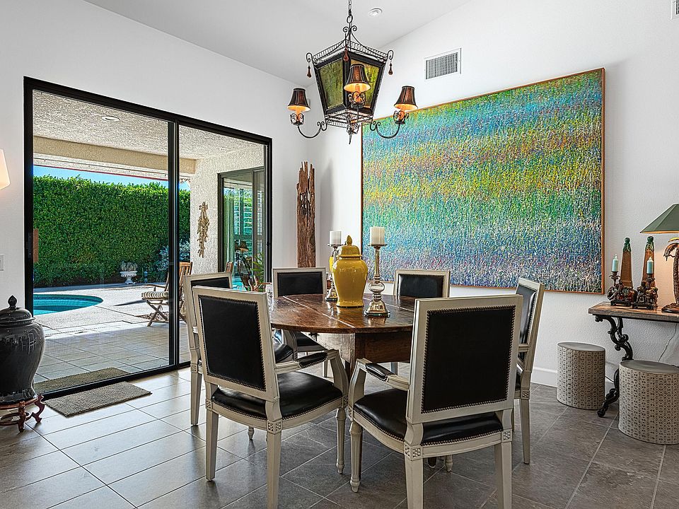 A must see property. Beautiful updated home in private gated Mission Pointe neighborhood. Adjacent to Tamarisk and Mission Hills. Features include two primary suites and roomy guest room, Open concept great room, living and dining room with wet bar overlooking private yard and pool, covered patio with retractable awning, bright remodeled center island kitchen with walk in pantry. Move-in and enjoy the wonderful desert life style with association pickleball, tennis, and gym. Relax in the private back yard with the lush hedged perimeter and desert landscaping that surrounds the secluded pool and terrace. Great property!