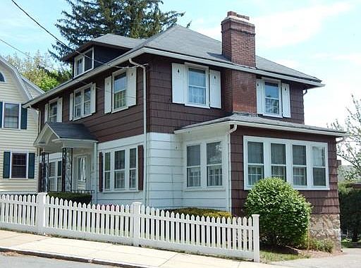 Call today and start the process of calling this Classic Hip Roof Colonial your home. In a prime location, just a hop, skip, and a jump to shops, restaurants, and the commuter rail. This stately 4 bedroom, 2 bathroom house offers charming curb appeal. Relax and unwind in the nice and bright den off of the oversized front-to-back living room with a fireplace. The formal dining room is perfect for fine entertaining. Enjoy the breeze and privacy from the deck off of the large eat-in kitchen that overlooks the lovely yard with a patio area. A 1 car garage, a bonus walk up attic, and a finished, walk-out basement with fireplace add to the appeal of this wonderful house.