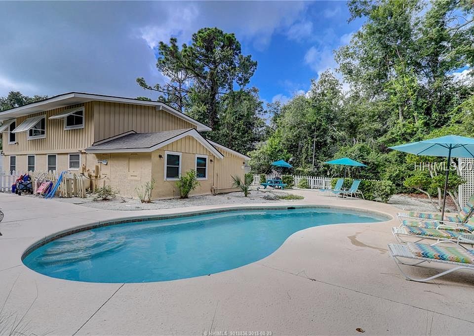 Charming Beach Cottage located 4th row from the Ocean This 5 Bedroom, 3.5 bath home features an open floor plan with living room, fireplace, kitchen, dining area, covered porch, extensive patio with 35 ft. pool, and fenced in backyard with horseshoe pit for your private setting. Conveniently located mid Island to all of Hilton Head's finest restaurants, shopping centers, golf courses and tennis facilities. Great investment property.
