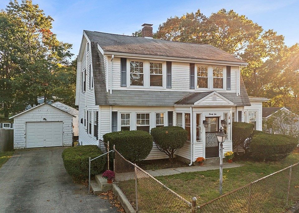Opportunity and sweat equity is yours when you add your touch to this unique Dutch Colonial in a desirable pond neighborhood. This spacious, light filled home overlooking Whitman’s Pond features hardwood floors, Beautiful built in hutch and some authentic glass doorknobs. Relax in the large fireplace living room or retreat to the four-season sunroom to enjoy the spectacular sunset over the pond. The first floor is complete with a dining room, kitchen, quarter bathroom and Pergo flooring. Upstairs there are three bedrooms, full bath and convenient walk-up attic. Other features include a 1 car detached garage with workshop/bonus room attached and easy-care vinyl siding and replacement windows. Back yard is large, level and fenced with gardens awaiting revitalization by new owners. Close to public transportation and shopping. Home has a gas range. First showings at open house Saturday and Sunday 10/22-23 from 11-1