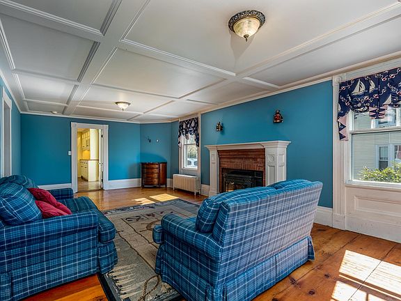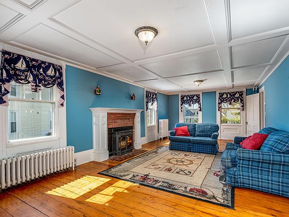 A quintessential New Englander nestled in the heart of Camden village makes it the perfect summer getaway home or to enjoy all the Mid-Coast has to offer. It's cozy charm boasts original features such as pine floors, a curved staircase, a carriage house but also has many modern amenities. A beautiful custom kitchen from The Rockport Company, first floor living, two primary bedroom suites, a large living room with a woodburning fireplace, and a music room addition. This property is a magical setting to enjoy all Maine seasons.