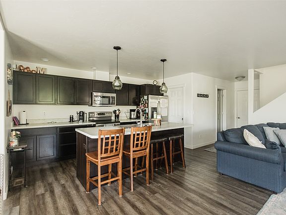 Well maintained townhome with convenient Kalispell location. The townhome was built in 2016 and offers 3 bedrooms and 2 1/2 bathrooms with a two car attached garage. The main level includes the kitchen with eating bar, spacious living area, powder bathroom and dining area. The upper level includes 2 bedrooms, bathroom, flex area and primary suite with private bathroom and walk in closet. The home offers almost 2000 sqft of living space with an attached 2 car garage. Exterior features include a fenced back yard that backs up to Muskrat Slough and the newer deck offers great entertaining options. Call listing agent regarding showing instructions.