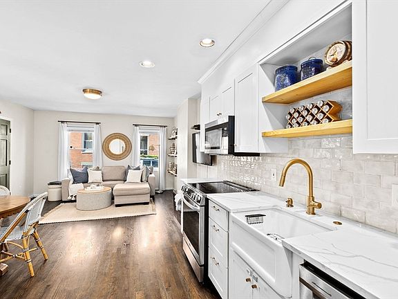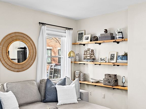 Discover the epitome of convenient living in the heart of Charlestown, where elegance, comfort, & scenic beauty merge to create an extraordinary lifestyle! This home is meticulously maintained & in PRISTINE condition. SUNLIGHT pours into the open living area, highlighting hardwood floors, hand crafted shelving, & the professionally designed kitchen (2022). Featuring tall white cabinetry, Quartz counters, and 2 built-in/slide out pantries, this kitchen has it all! Retreat to the gracious primary bedroom, offering custom closets, built-in bed-side lighting, & sophisticated accent wall paneling. No expense spared in the centrally located bathroom, featuring barn door entry, designer vanity, and full tile-surround with marble inlay shower. The spacious 2nd bedroom features custom closet & view of patio. Fresh paint throughout, built-in LAUNDRY in-unit, private & fenced outdoor PATIO, central AC, & spacious STORAGE area in the basement. The perfect blend of city living & neighborhood charm!