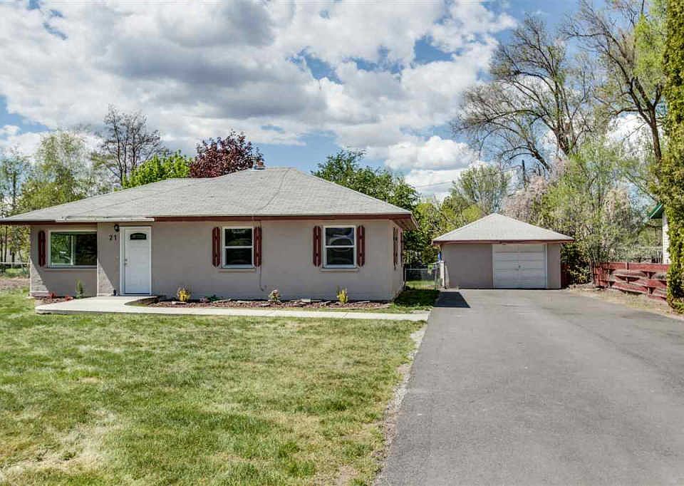 One level living in Spokane Valley! Don't miss out on this well maintained 3 BR, 1 BA home w/ many updates and central a/c. Kitchen features stainless steel appliances, oak cabinets, and a cozy eating space. Solid surface flooring throughout, including laminate floors in living room and bedrooms, and tile in the bath. Relax on the covered back deck on those warm summer days that are coming soon! Over-sized 1 car garage has a shop area w/ workbench, automatic opener, and newly paved driveway with RV parking.