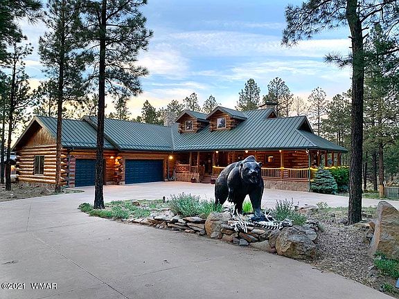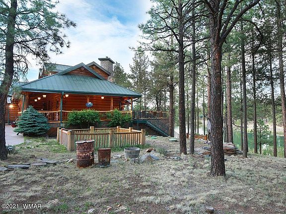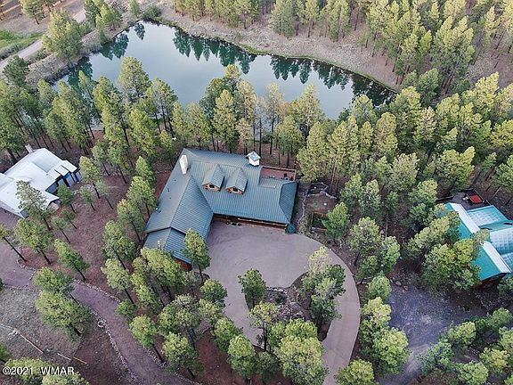 Congratulations, you have discovered one of the finest log homes anywhere in the Southwest. This is where the finest of Montana's giant spruce trees have come to retire; Greer, the heart of Arizona's White Mountains. These beautiful logs were hand sculpted on site to create an impeccable, large yet cozy structure nestled beneath tall pines and reflected by a beautiful, stocked private pond. The towering 22 foot stone fire place warms the expansive family room and frames the venue for generations of memories to be built.The open gourmet kitchen is filled with stainless appliances, surrounded by custom granite counters, breakfast bar, and a large island. A generous pantry allows for efficient food prep without missing out on the family events.