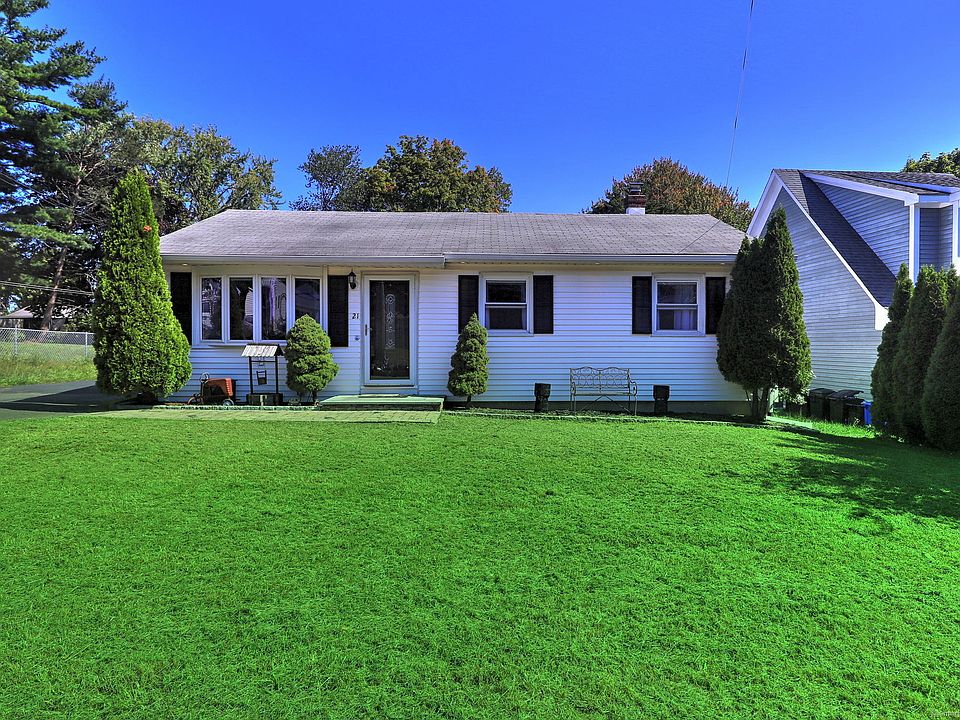 Welcome Home to 21 Nacca Road! This adorable ranch home was updated 9 years ago and features an open, easy living plan. The kitchen features an eating area, cherry cabinets, stainless appliances and a tile backsplash, plus a door to the deck and yard. There is newer flooring in the living room, hall and bedrooms and the primary bedroom provides plenty of space for a sitting area or home office. The previous owner took down a wall to create this double sized room, but the option exists to add a wall and create a third bedroom on the main level. The finished lower level features a family room, third bedroom/office and full bath. The level fenced yard includes both a deck and patio plus a lawn area to enjoy outdoor activities. A spacious two car garage with remote opener completes the picture. Conveniently located for easy access to shopping and highways for commuters.