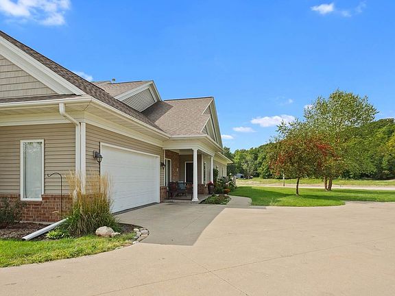 Zero entry into this spacious & bright end unit ranch condo! Sought after area w/beautiful views & amenities nearby! The gorgeous kitchen w/tons of storage & granite tops overlooks the dining area & living room w/gas fireplace. Bright sun room in back with patio. Primary bedroom feat. 2 closets, private bath w/soaking tub, shower & dual sinks. 2 more great sized bedrooms & another full bath. Laundry rm off the 2 car garage! Radiant floor heating throughout entire home w/adjustable controls in every room!